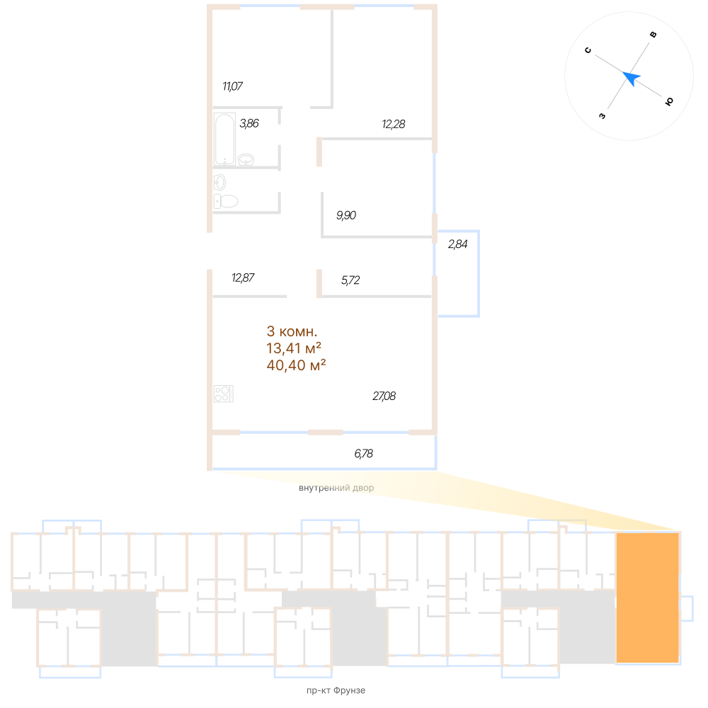 Трехкомнатная квартира №39