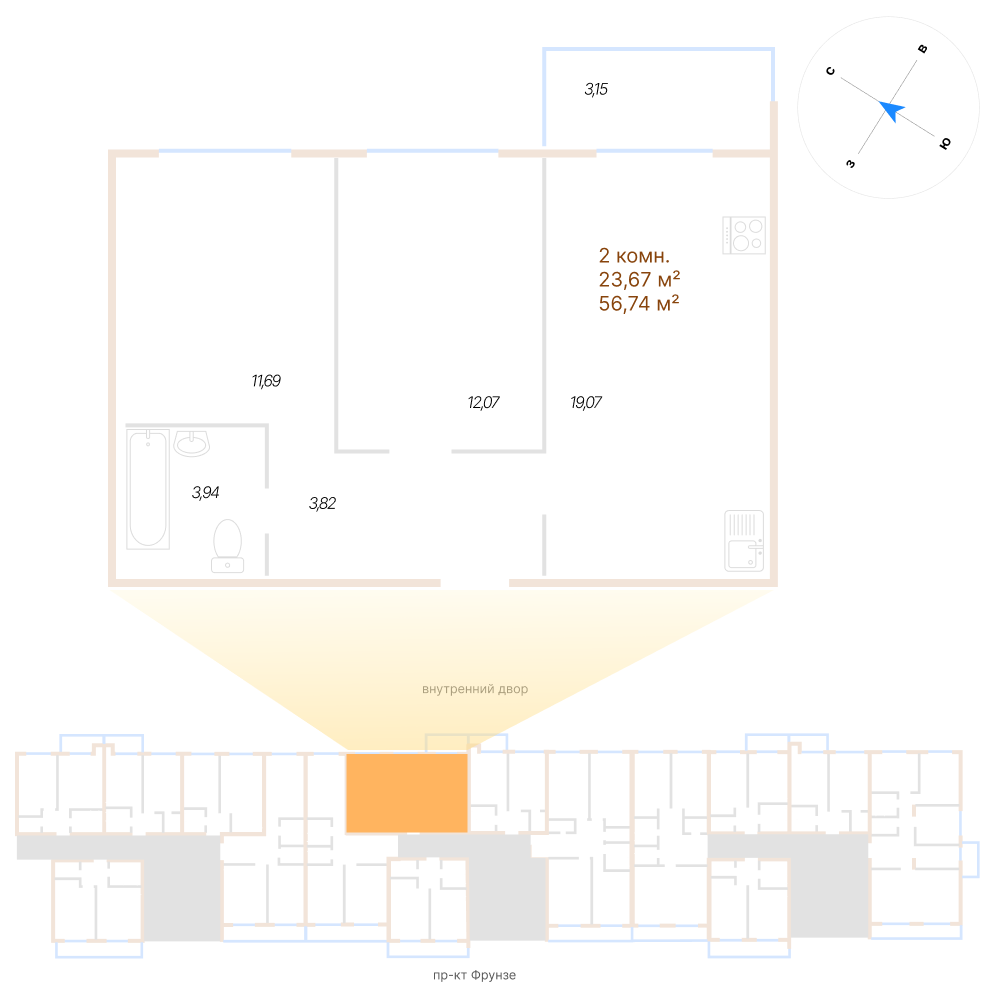 Двухкомнатная квартира №76