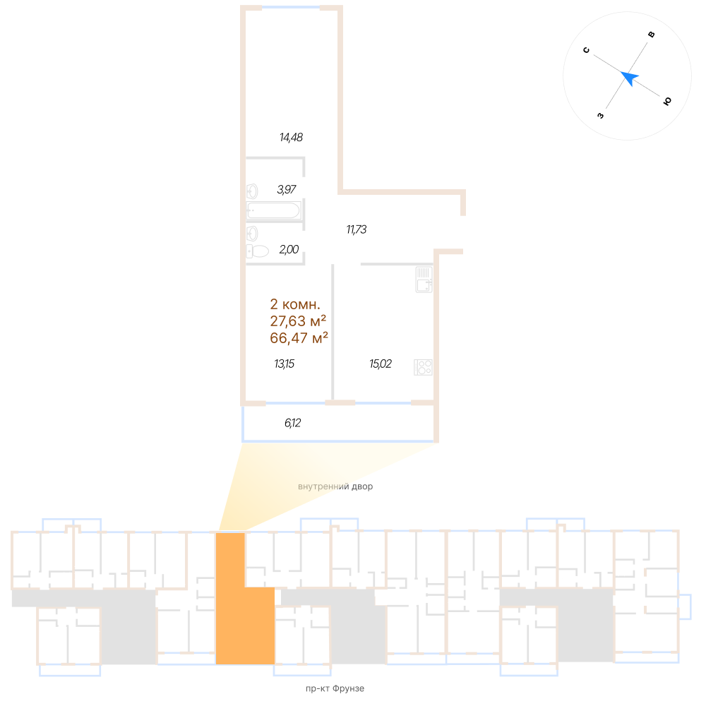 Двухкомнатная квартира №80